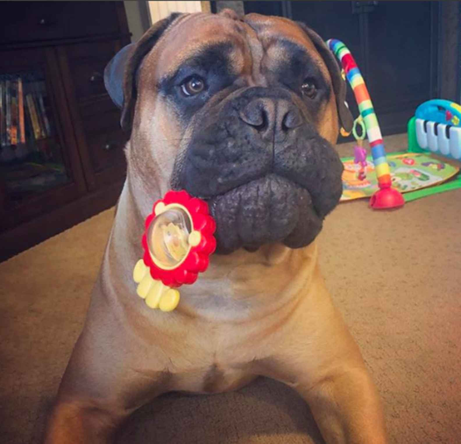 Despite Brutus’ penchant for destroying toys, he’s the most loyal and gentle dog.