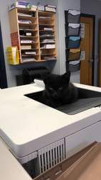According to the Alameda County Sheriff’s Office in California, the little black cat simply showed up a couple of days ago outside one of their stations in Eden Township. Tiny though he was, the kitten appeared to have some grand ambitions.”We think he was trying to walk on as a K9 unit and refused to leave until he got into the building for an interview,” the sheriff’s office wrote online. “Once in the sergeant’s office, he took over the printer and had a little nap.”