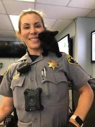 The kitty’s refusal to be ignored paid off. “We are happy to say he was taken to the vet by Deputy Scalise and she is going to adopt him,” the sheriff’s office reported.